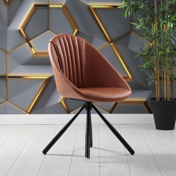 Milo Cylinder Chair with Black Metal Legs (Brown Nubuck)