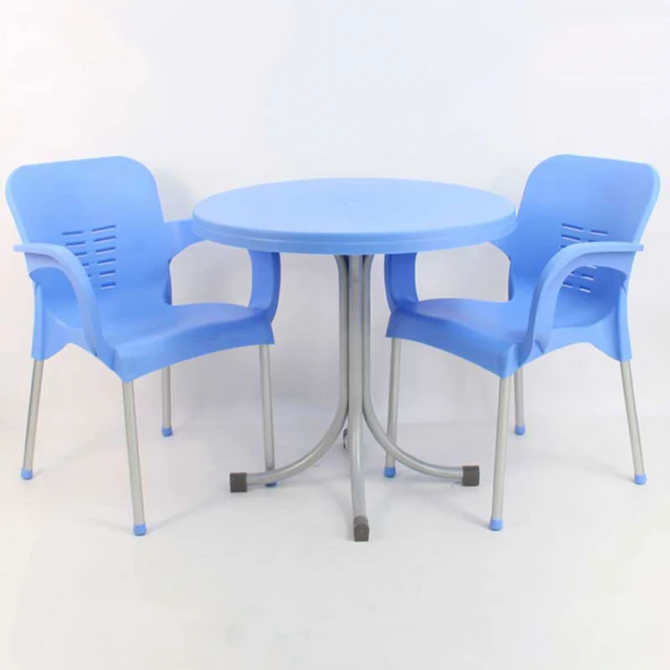 80 Diameter Tugra Cafeteria Table Set Blue