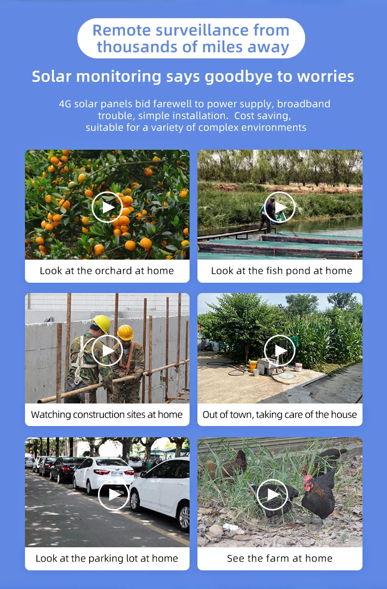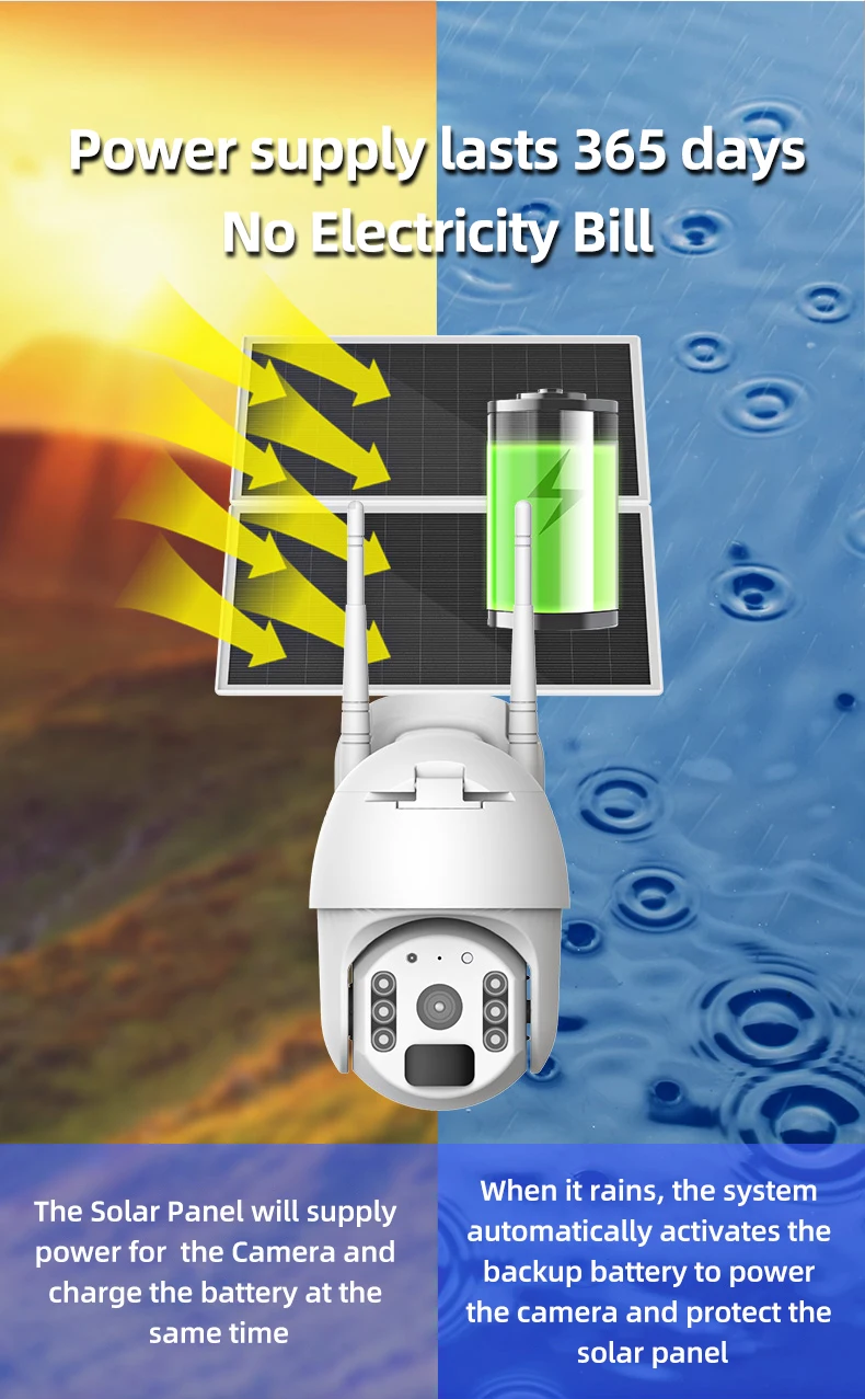 All cameras include solar panel + 6pcs 18650 batteries + 4m power cable