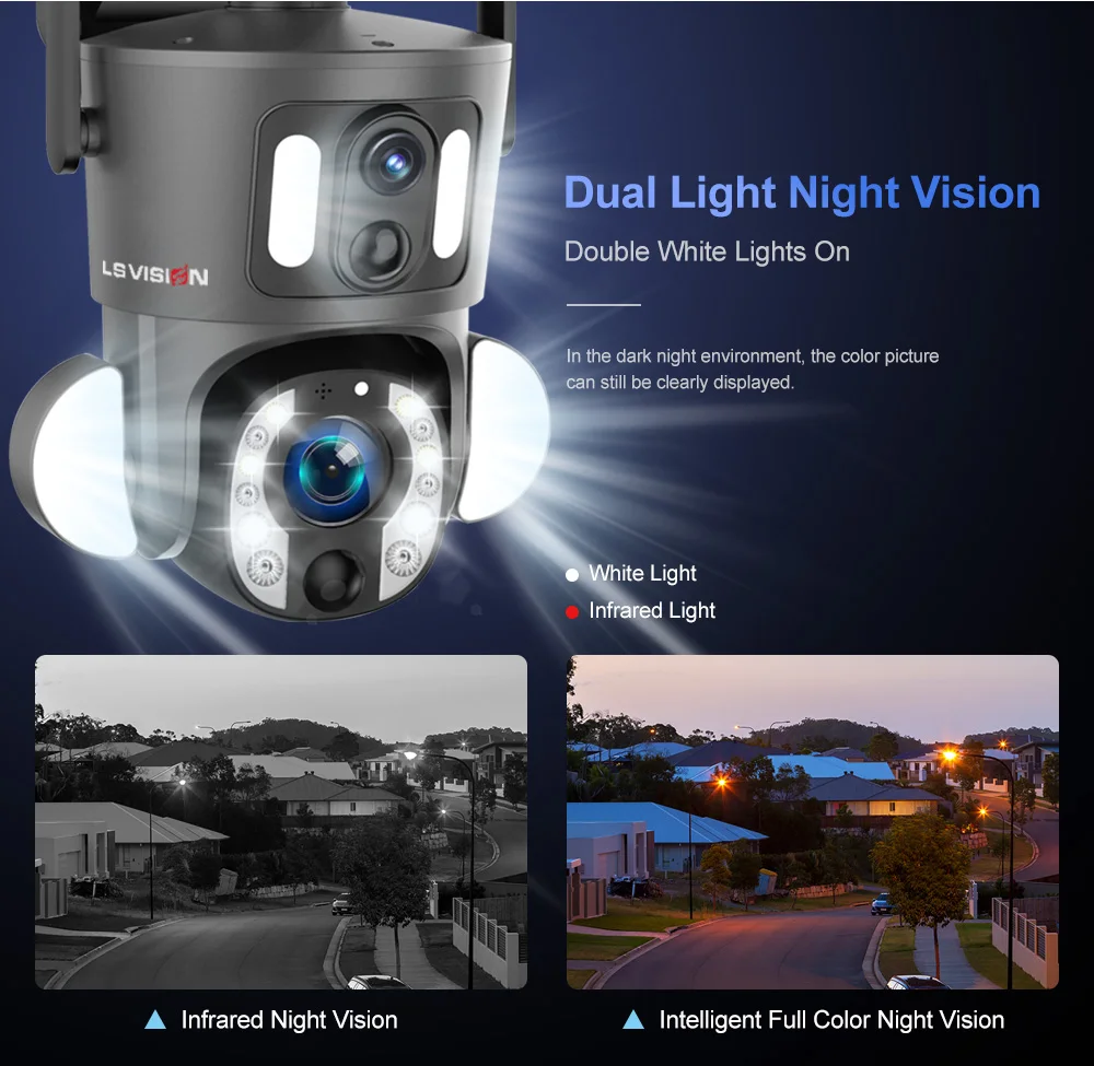 12. Built-in infrared light + white light, night vision full color or infrared mode optional, IR distance 40 meters