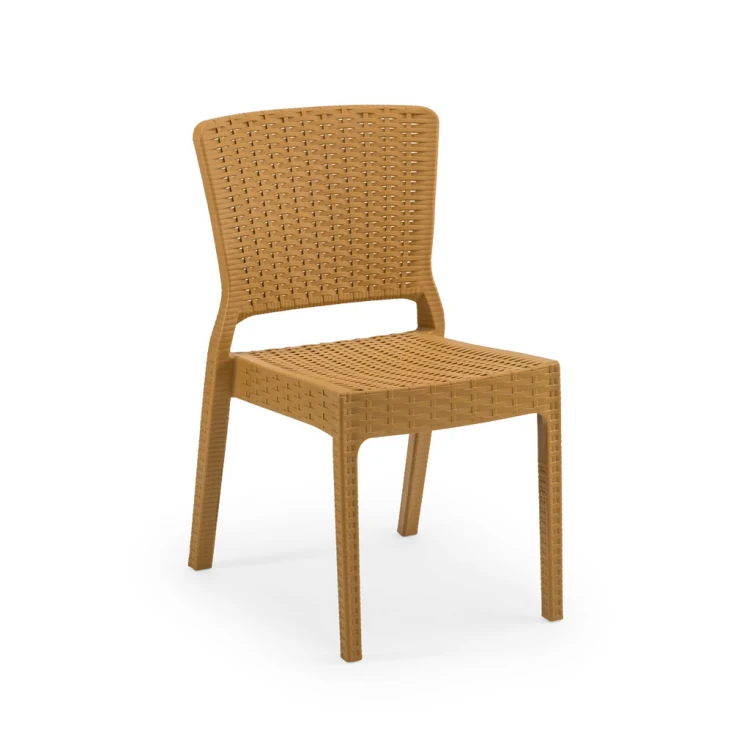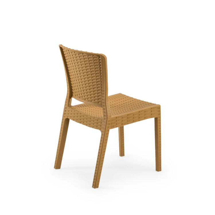 - Material: The chair body is made of polypropylene (PP). This material gives the chair lightness, durability and easy cleaning. The PP material also imitates the natural rattan appearance, giving the chair a stylish aesthetic.
