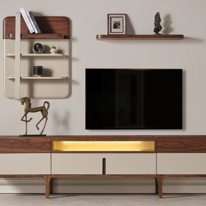 | TV Unit | The front surfaces are made of glossy lacquer panel material with high scratch and fire resistance. The feet are metal. Slowing tandem rails are used in the drawers. |