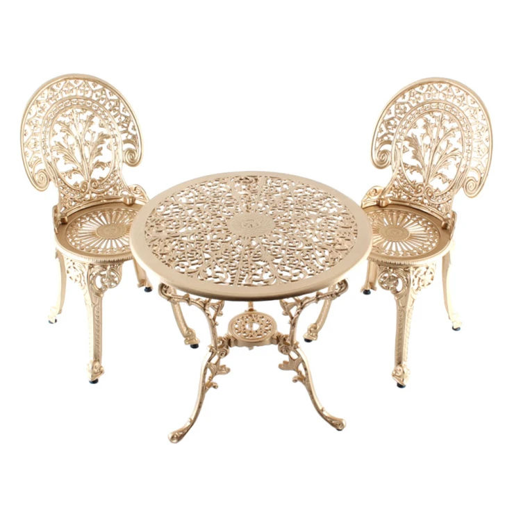 The cast iron table chair set you are reviewing is sold as a set in the form of two chairs and a table. Since it is cast aluminum, it is useful and robust. Chairs can be added if desired.