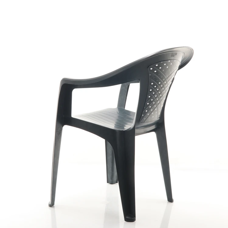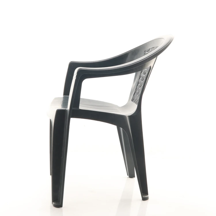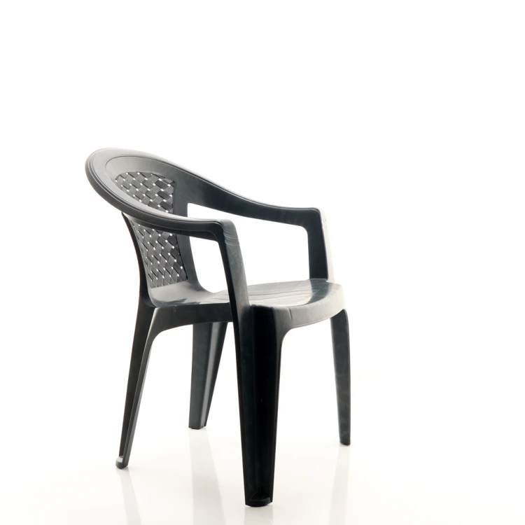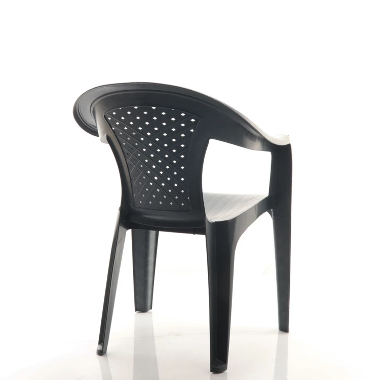 The plastic chair with arms you are reviewing is made of first class material. The product is stackable. Being stackable means that it can be stored in small warehouses after use. It is manufactured to be used indoors and outdoors for many years.