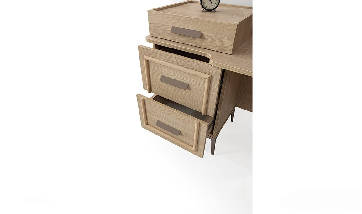 It consists of 1 wardrobe, 1 bed and headboard, 1 nightstand and 1 study desk. |