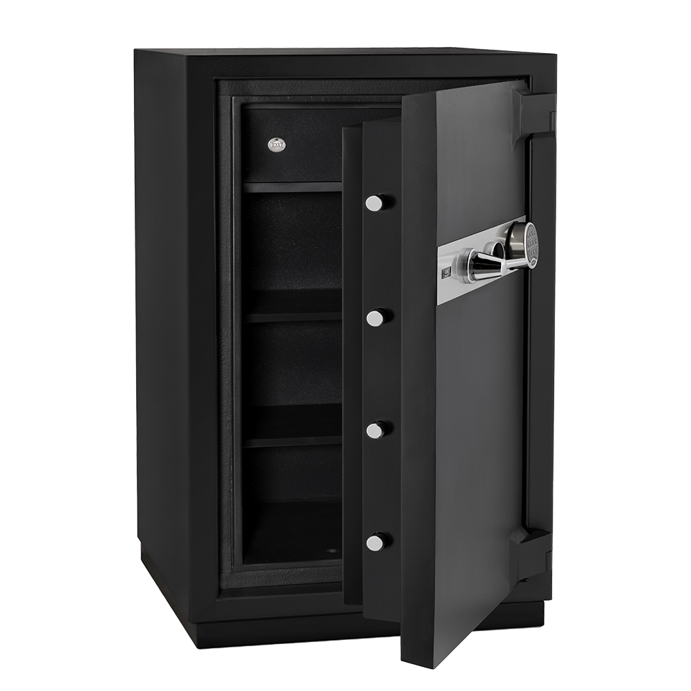 The medium and large size steel safes contain an additional security compartment which provides extra security to your valuables. Inner shelf spaces may be adjusted as desired with the help of the groove pin inside the safe.