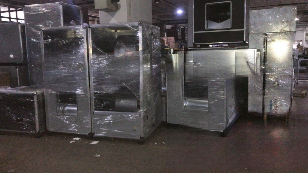 The casing is produced from galvanized sheet metal between 0.70 mm and 1 mm. It is filled with 20 mm thick glass wool as a double wall. Its frame is made of aluminum profile and the corners are plastic. The motor and fan work with belt and pulley drive on the chassis. Anti-vibration rubber mounts are provided and sealing is ensured with special gaskets. The shooting port connection is connected with a connector. The engine is connected to the chassis with a tensioning slide.