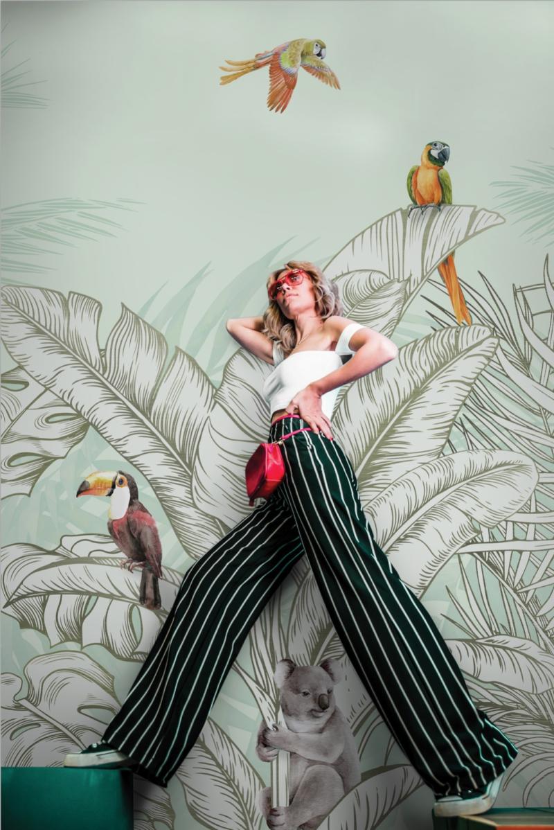 SKU: llawada:FJ307 Serie | Animals And Palm Leaves Pattern Mural Wallpaper