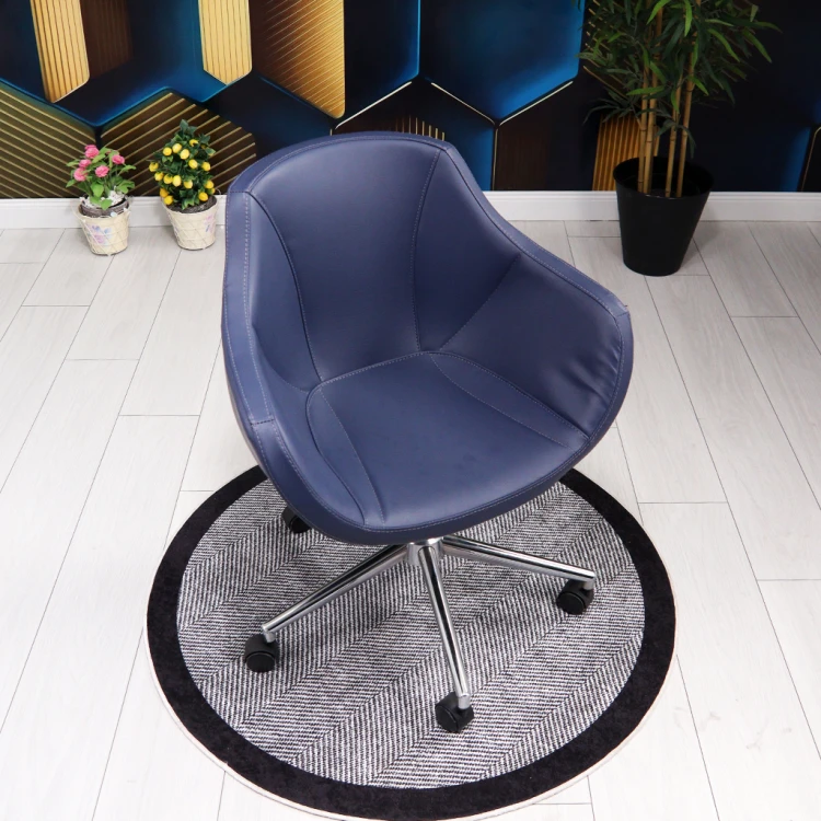 - Material: Molded sponge, chrome feet, navy blue leather