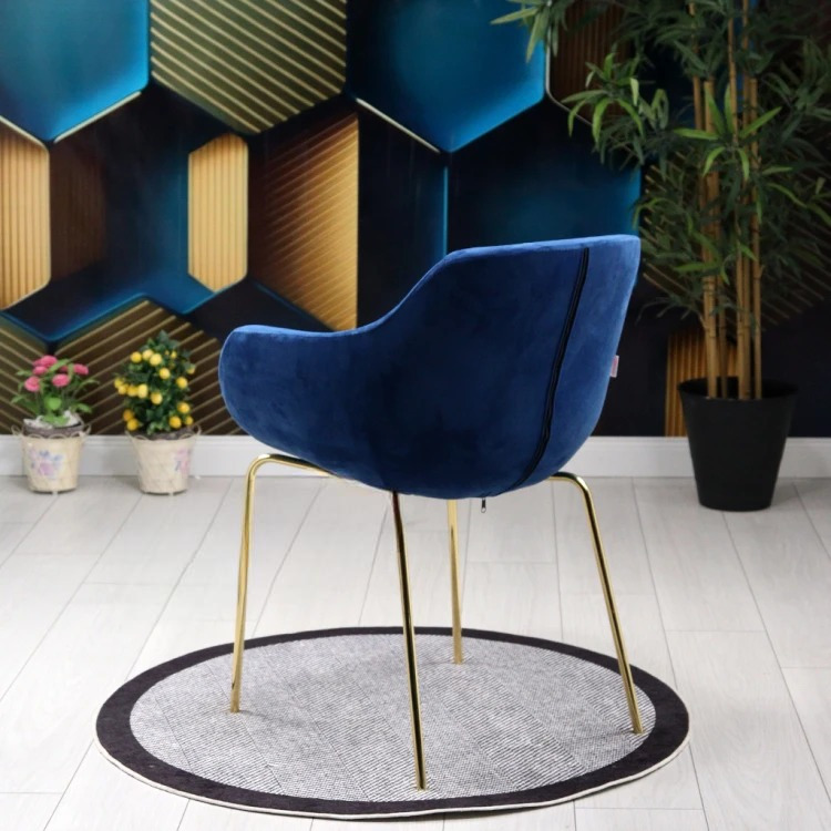 Focus Gold Plated Metal Leg Guest Chair (Blue Fabric)