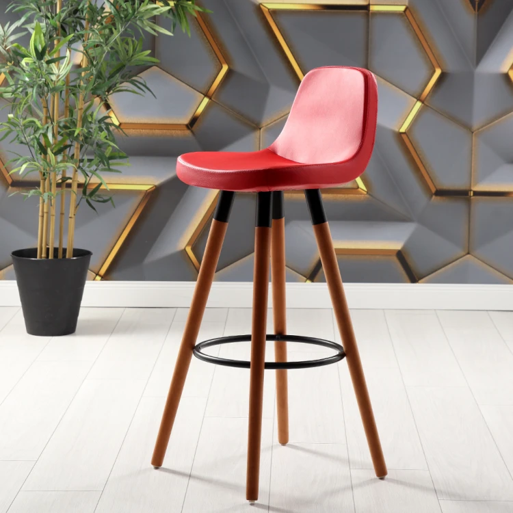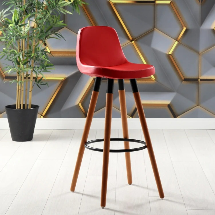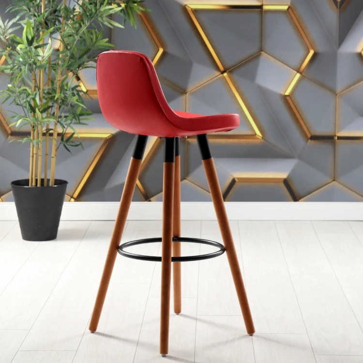 Gabriel Bar Chair with Walnut Wooden Legs (Red Leather)
