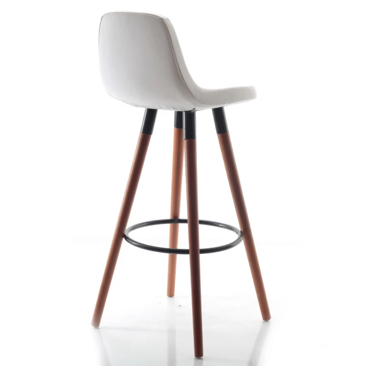 Gabriel Bar Chair with Walnut Wooden Legs (White Leather)