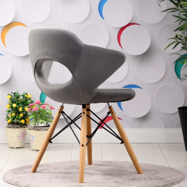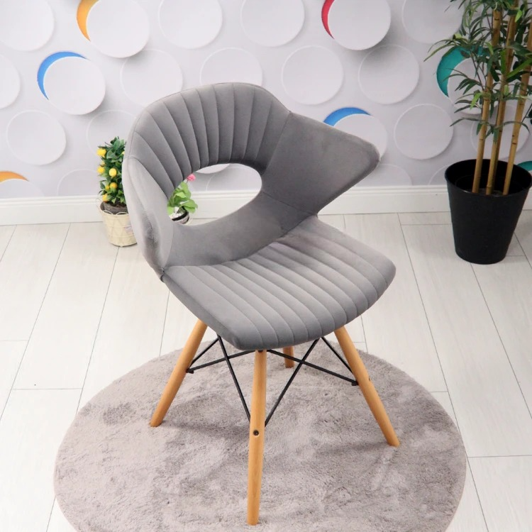 Hole Natural Wooden Leg Rod Chair (Grey Fabric)