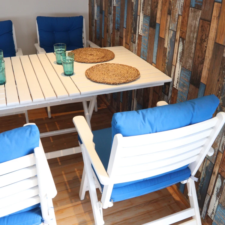 - Easy to Clean: Fabric upholstery and cushions can be easily cleaned .