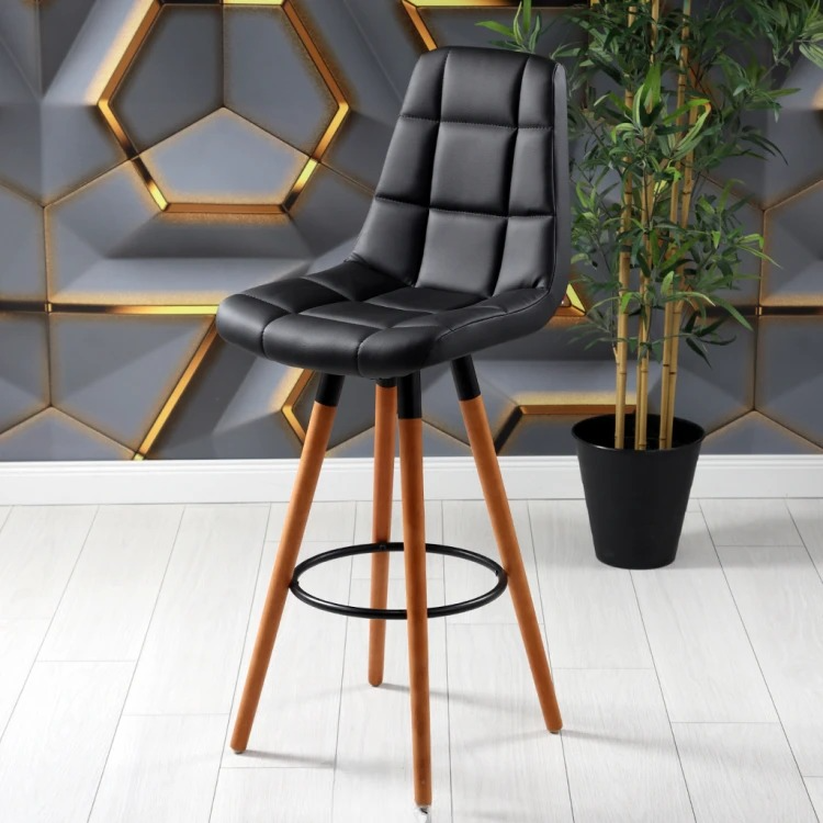 • Modern and stylish design:  Lucia bar chair has a modern and stylish design with walnut wooden legs and matt green leather covering. It has an elegant look that will fit into any environment.