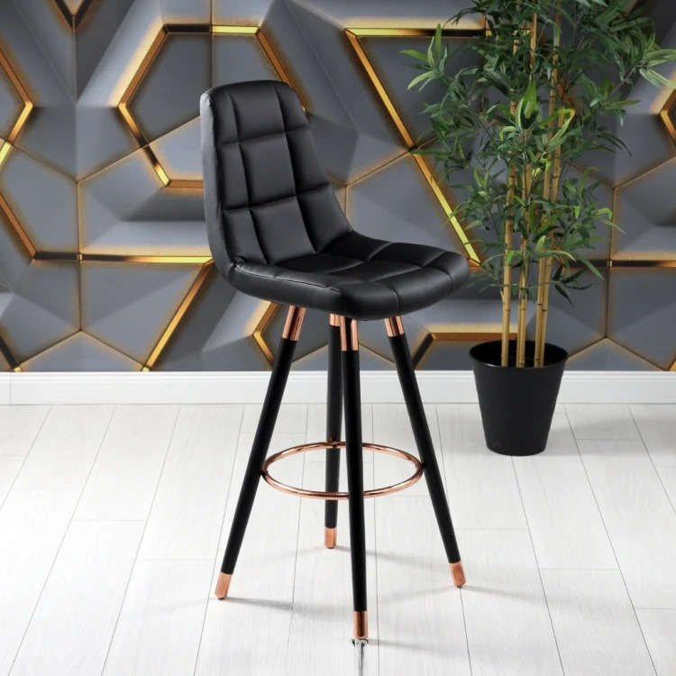 - Modern and Stylish Design: Lucia Copper Color Coated Bar Chair will add an eye-catching atmosphere to your kitchen or bar with its modern and stylish design. It can fit into any decoration with its copper color coating and black leather upholstery.