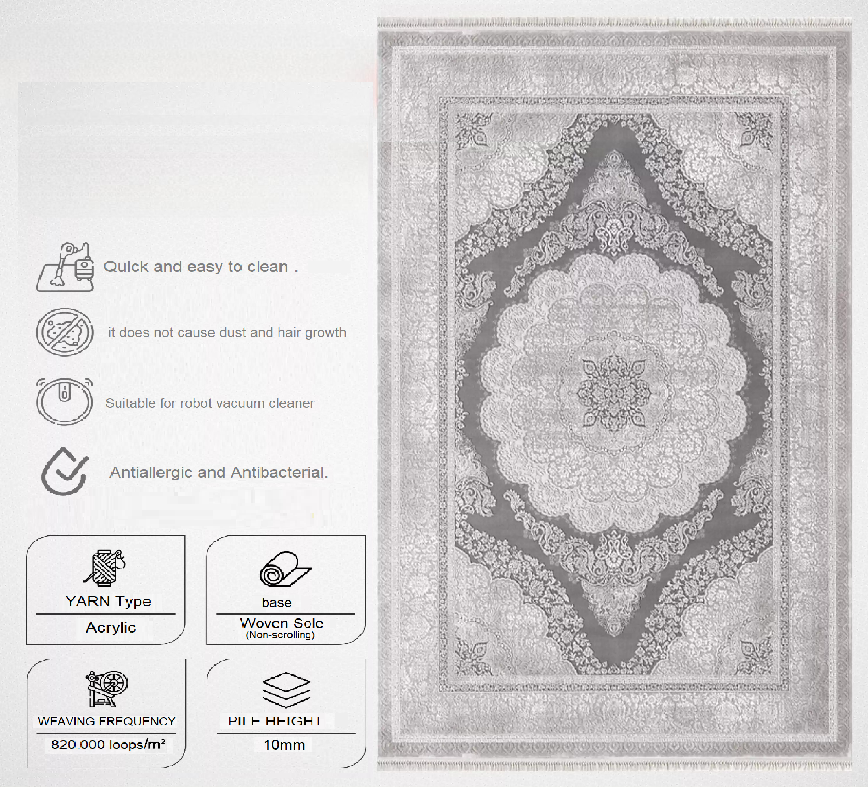 Merinos Rodin 19773 96 Premium Acrylic Living Room Carpet offers you one of the best carpet options for a perfect home environment. It is woven from 100% high quality Acrylic yarns and produced in standard sizes. Thanks to Acrylic yarns, it has a soft, comfortable and shiny texture. It adapts to different decoration styles with its colors. It is designed for long-term use. At the same time, it creates a soft touch feeling on your feet thanks to its soft texture, helping you relieve the tiredness of the day. Complete the missing piece of your room with the Merinos Rodin Collection !