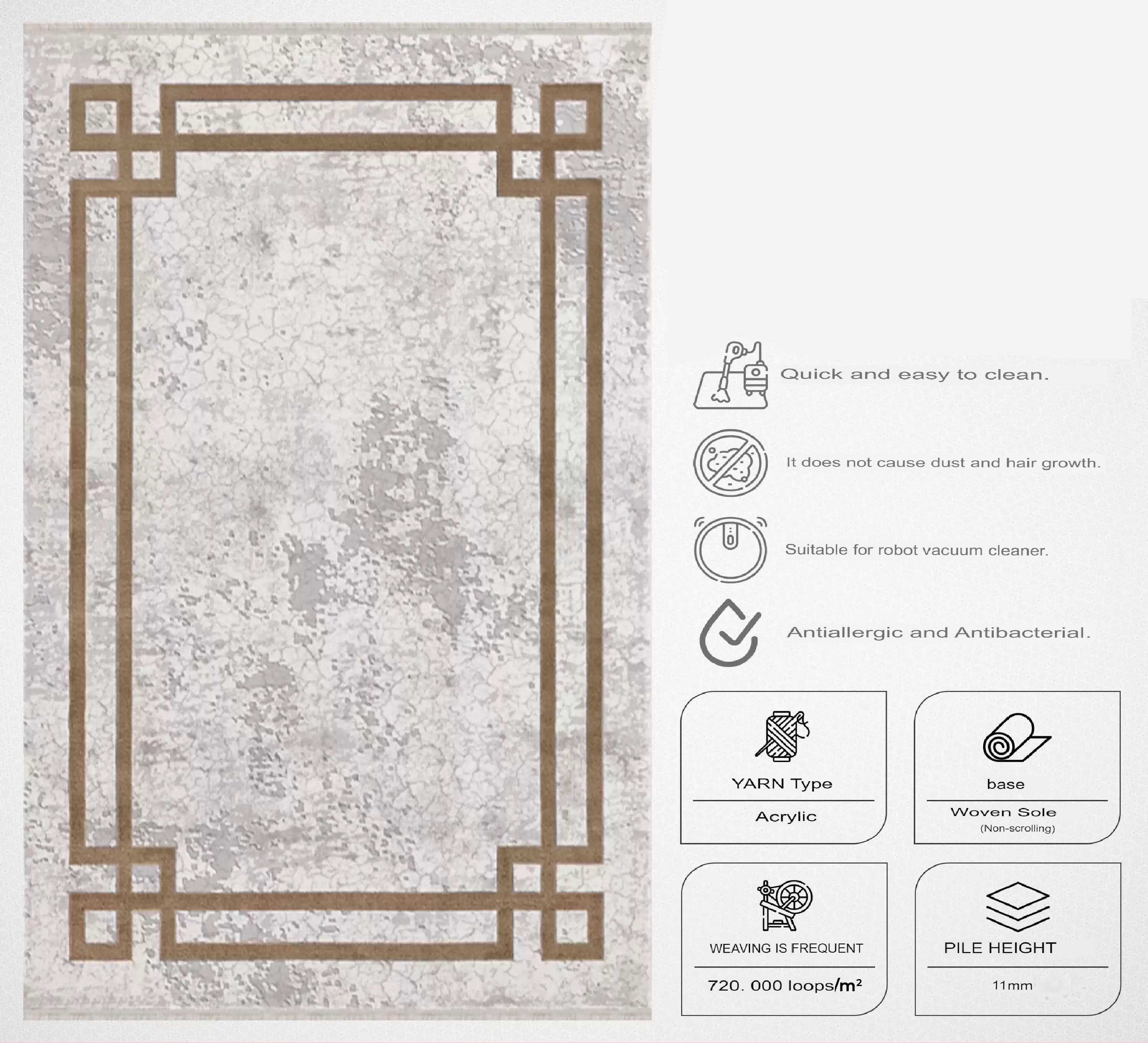 Merinos Therapy 33260 80 Modern Framed Acrylic Living Room Carpet offers you one of the best carpet options for a perfect home environment. It is woven from 100% high quality Acrylic yarns and produced in standard sizes. Thanks to Acrylic yarns, it has a soft, comfortable and shiny texture. It adapts to different decoration styles with its colors. It is designed for long-term use. At the same time, it creates a soft touch feeling on your feet thanks to its soft texture, helping you relieve the tiredness of the day. Complete the missing piece of your room with the Merinos Therapy Collection !