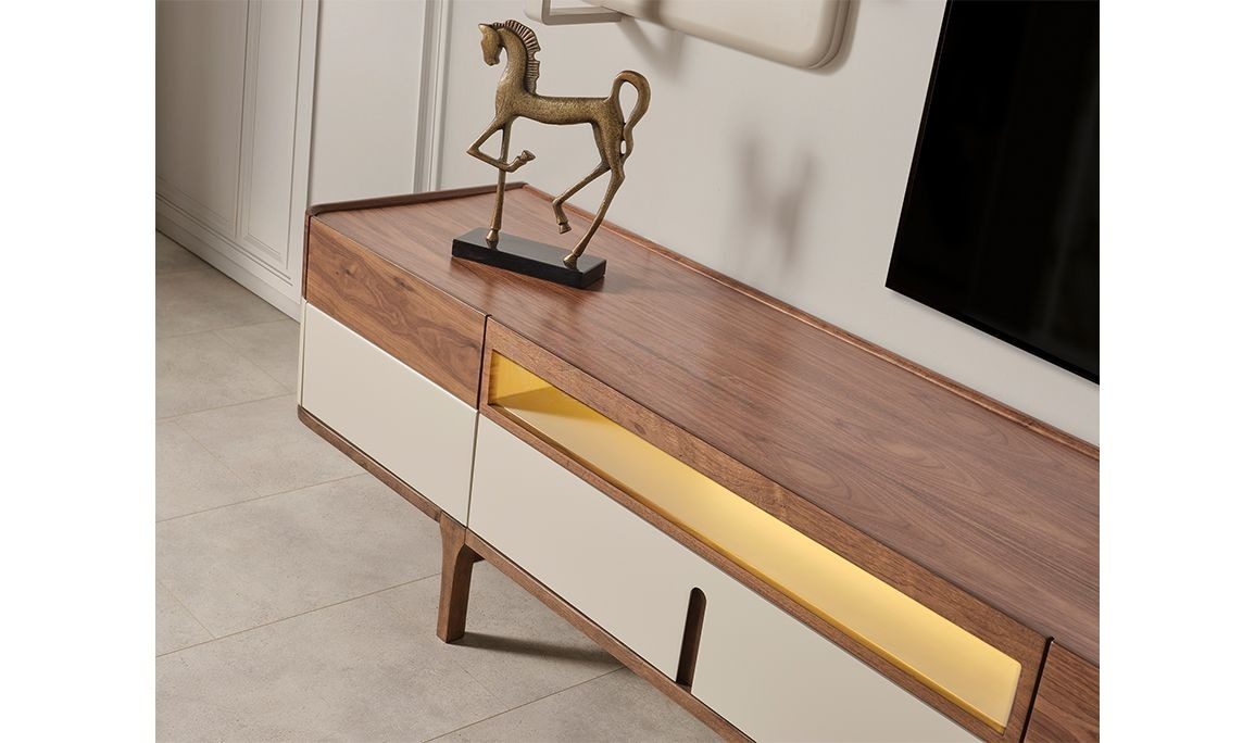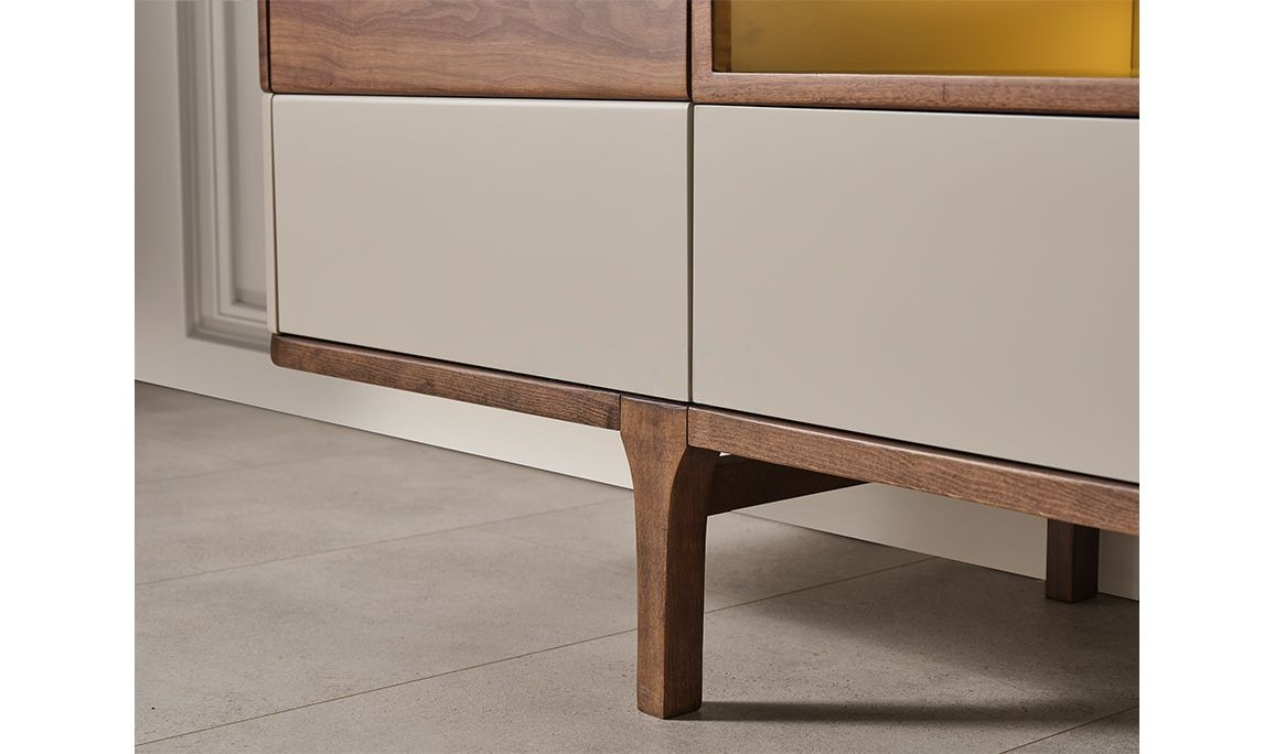 | TV Unit | All are made of MDF material. Lacquered areas are made of Sandstone color, Walnut areas are made of MDF American wave walnut veneer. Feet are made of beech wood. |