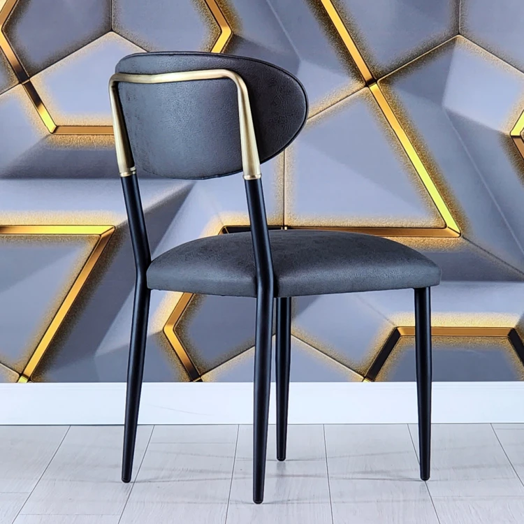 The fabric used is nubuck fabric. The product has metal legs and has an old gold detail on the back. With the gold detail, it stands out as a more stylish model among ordinary metal chairs. Different color options are available.