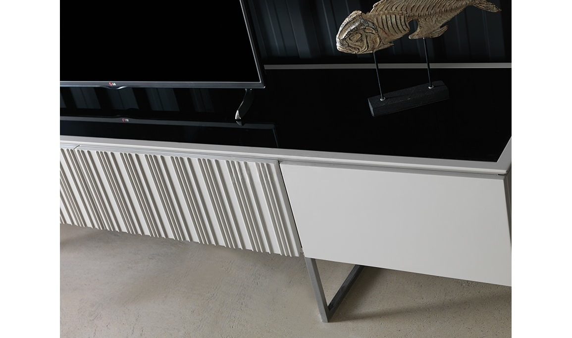 | TV Unit | The upper table frame is made of MDF material and lacquered paint. The middle part is made of glass. It is made of MDF material and lacquered paint. The legs are made of metal. Slowing tandem rails are used in the drawers. |