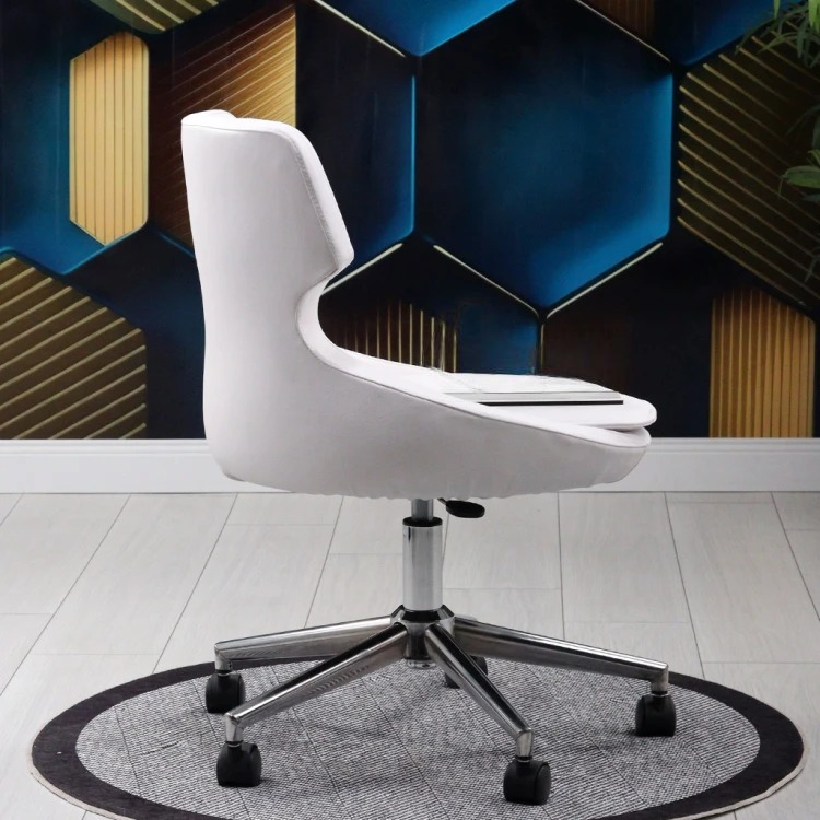Simge Chrome Star-Legged Work Chair (White Leather)