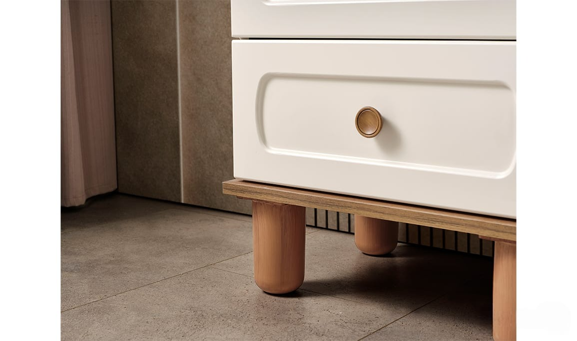 The body is made of particle board. The front surfaces are made of lacquered MDF material. |