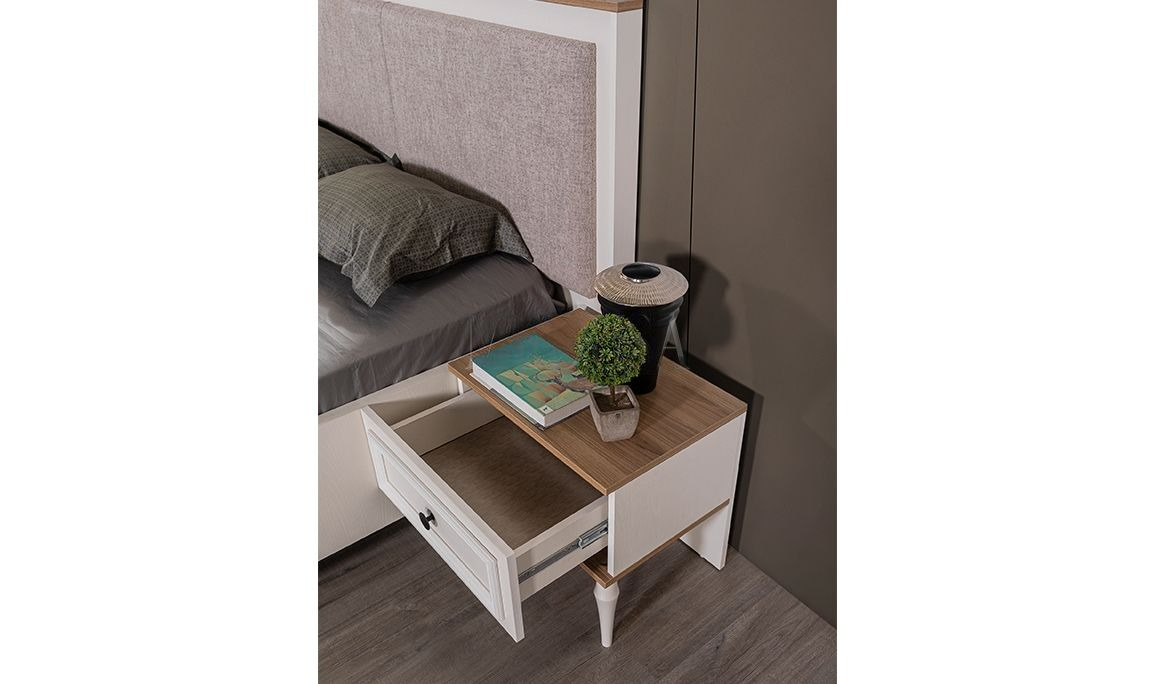 Team Content It consists of 1 wardrobe, 1 bedstead and headboard, 2 bedside tables, 1 dresser and mirror.